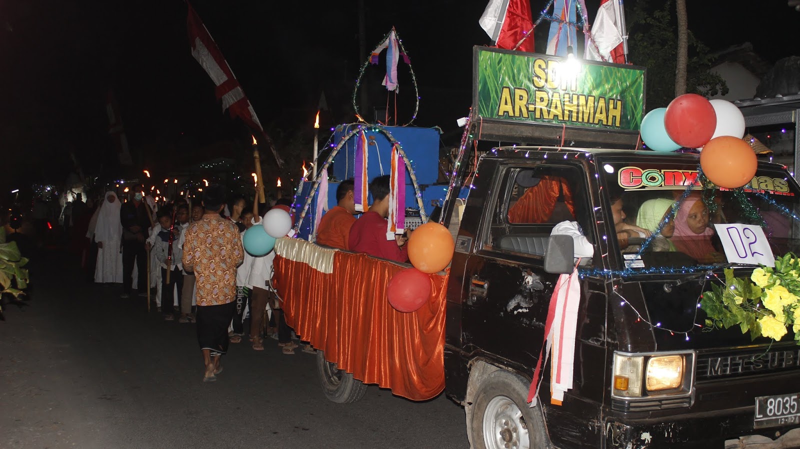 Tak kalah SDIT Ar Rahmah juga menampilkan hiasan lampu kelap kelip, sound sistem, dan untuk mengiringi alunan takbir, peserta membawa alat musik rebana (hadrah) dan alat musik digital. "Pokoknya meriah, tertib dan menghibur kami sekeluarga," ungkap salah satu warga.
